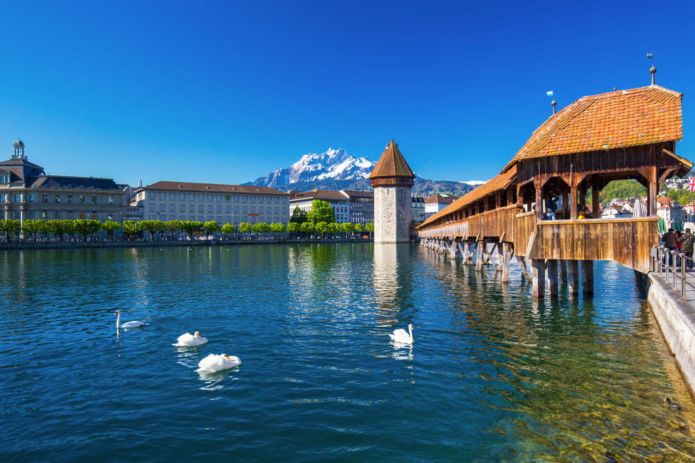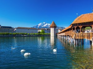 - Hồ Lucerne: là một hồ nước rộng lớn nằm tại thành phố Lucerne, miền Trung Thụy Sĩ. Qúy khách sẽ được chiêm ngưỡng vẻ đẹp của cây cầu hòa lẫn với sắc màu rực rỡ của quang cảnh nơi đây.